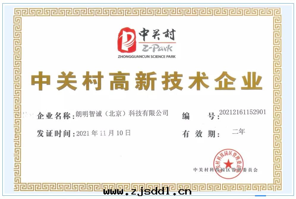 經(jīng)中(zhōng)關(guān)村(cūn)高(gāo)新(xīn)技術(shù)委員会(huì)評审核準,朗明(míng)智誠(北(běi)京(jīng))科技有(yǒu)限公(gōng)司于(yú)2021年(nián)11月(yuè)10日(rì),榮獲“中(zhōng)關(guān)村(cūn)高(gāo)新(xīn)技術(shù)企業”。